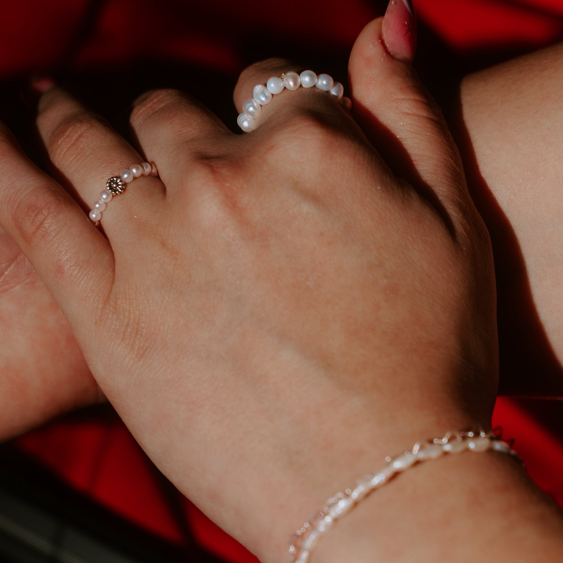 Soft, feminine, and thoughtfully detailed, this pearl ring features semi-round potato pearls strung delicately around the band for an organic, timeless look. Each pearl brings its own subtle character, making every ring beautifully unique.